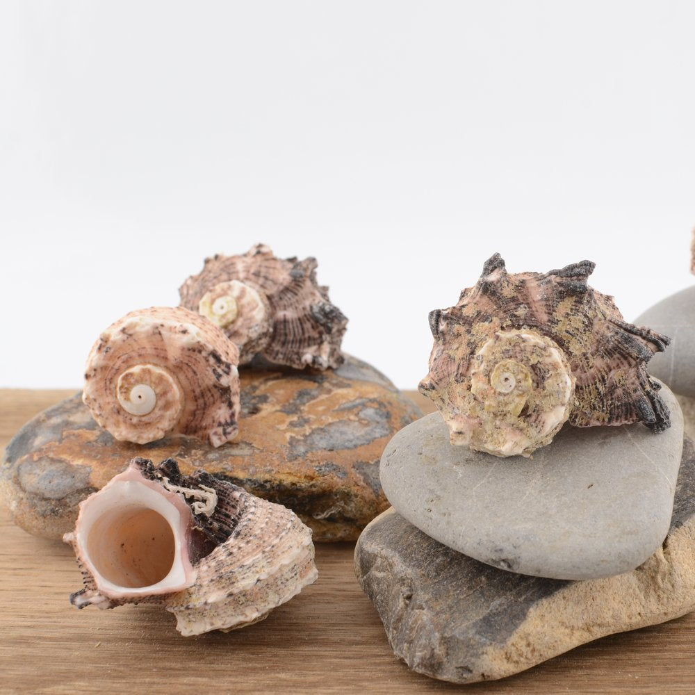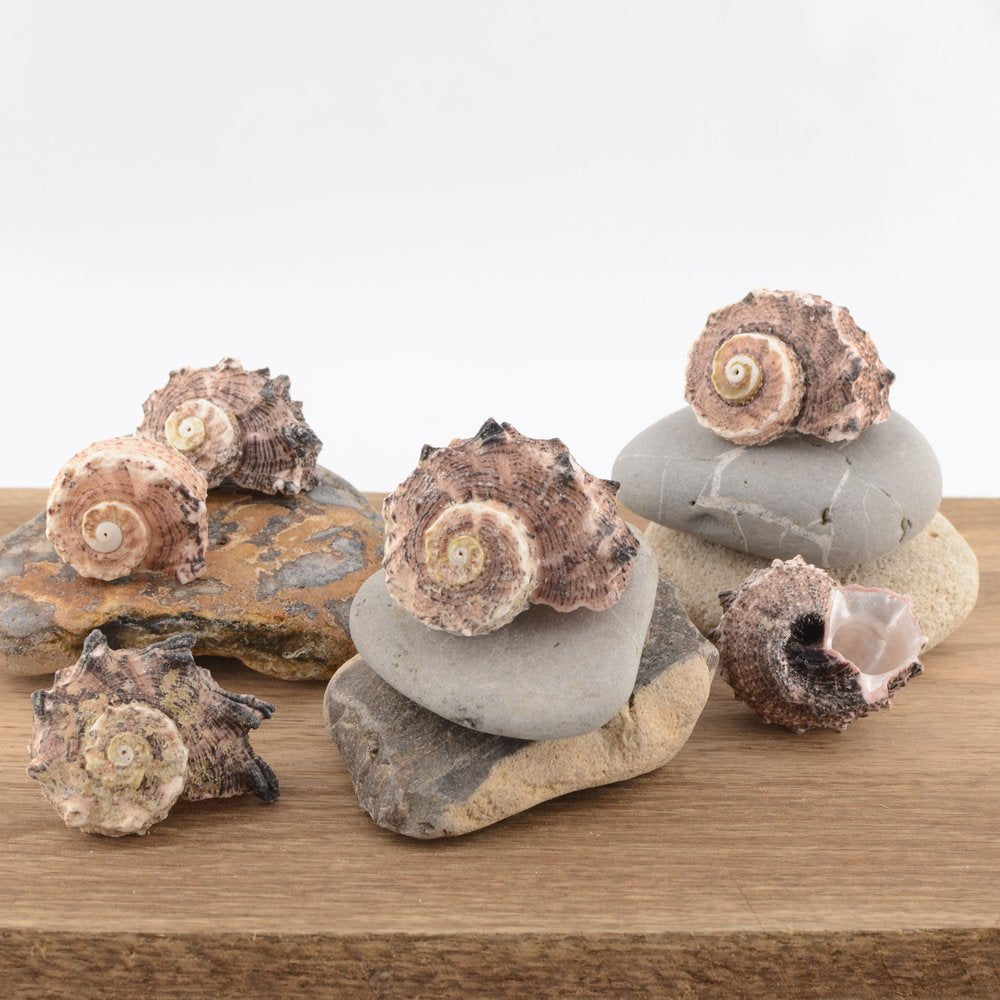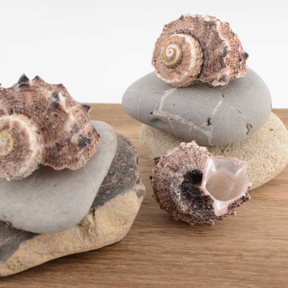 Each shell is natural and unpolished, with variation in tone, spine formation and overall character.