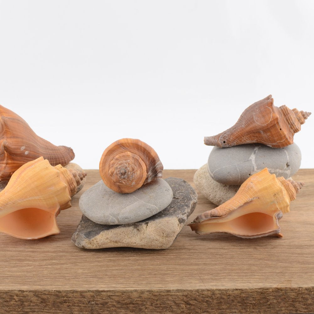 Recognisable for its elongated spiral form and strong sculptural ridging, this species has a distinctive, tapering shape with a pronounced spire. Colouring typically ranges from warm sandy tones through to soft browns, often with subtle banding and natural variation across the surface.