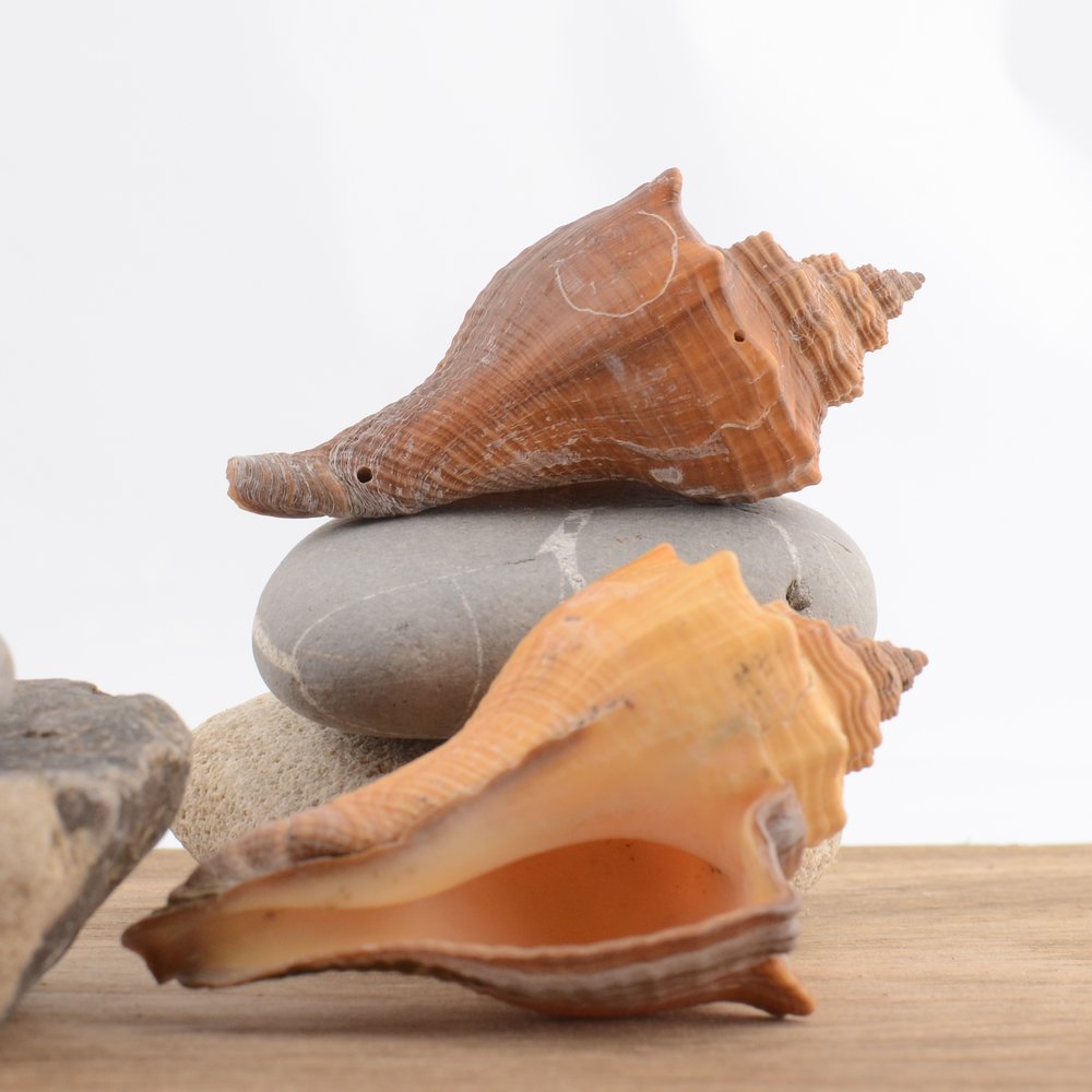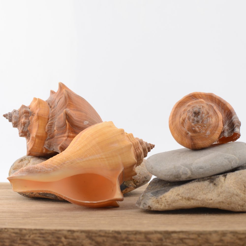 Natural Spiral Melongena shell, known scientifically as Volegalea cochlidium.
