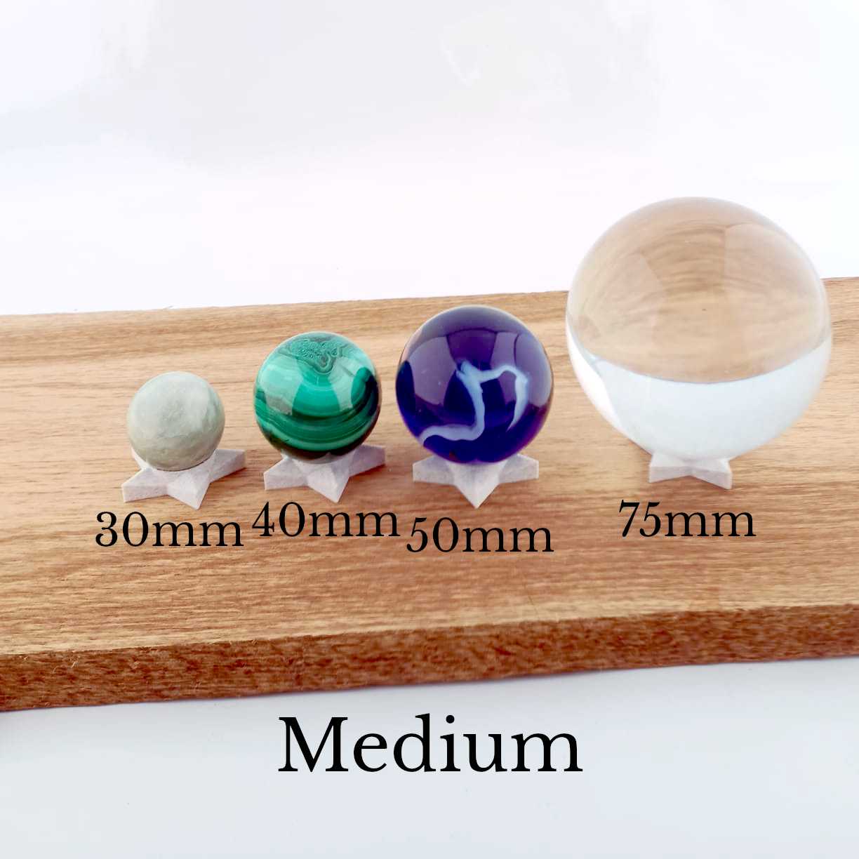 They have a wider footprint than the generic versions commonly available, giving extra stability, especially for larger spheres. The shape has been carefully refined so your sphere sits securely while still being beautifully displayed.
